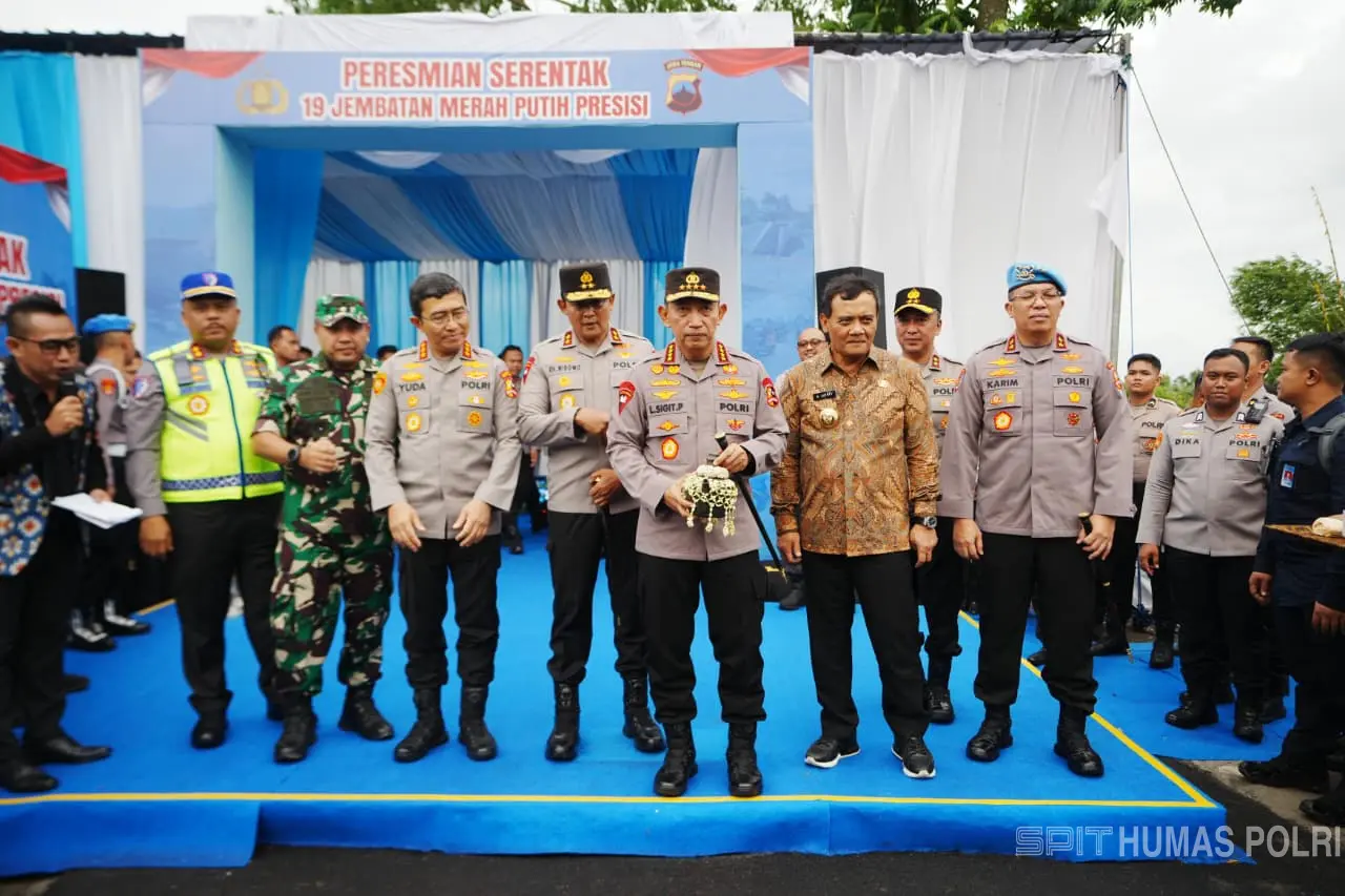 Jawa Tengah – Sebagai bentuk konkret komitmen dalam menjalankan visi nasional, Kapolri Jenderal Pol. Listyo Sigit Prabowo bangun 178 Jembatan Merah Putih Presisi. Data pembangunan jembatan ini meliputi 58 unit yang telah selesai, 32 unit dalam tahap pembangunan, enam unit jembatan Bailey dalam proses pengiriman, serta 82 unit lainnya masih dalam tahap perencanaan, dengan kontribusi terbesar berada di wilayah Polda Jateng.